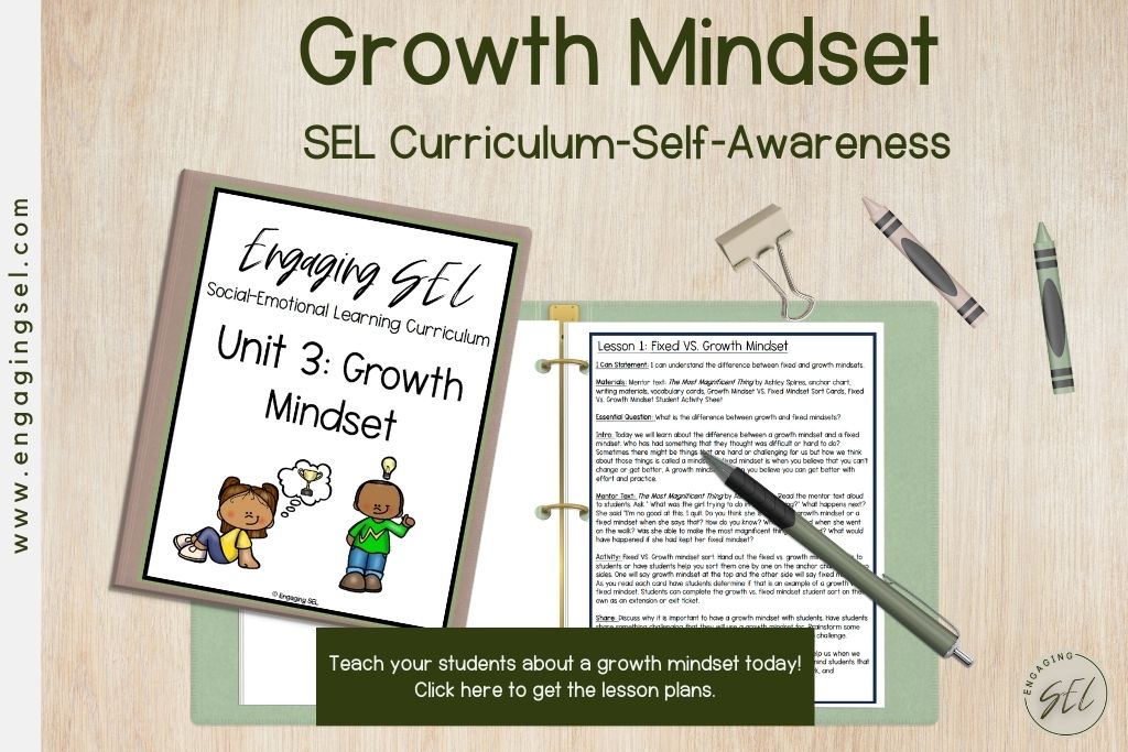 A growth mindset is best learned through explicit lessons that teach students about what exactly is going on in their brains and what they can do to control it. Use formal, explicit lessons dedicated to teaching students what a growth mindset is, how it can help them,m and what they can do to use a growth mindset in the classroom. My Growth Mindset unit from my Engaging SEL Curriculum is a great place to start teaching students about the growth mindset. This unit has lessons on the power of yet, brain elasticity, embracing challenges, and so much more. I hope it helps you start teaching your students about the power of using a growth mindset.