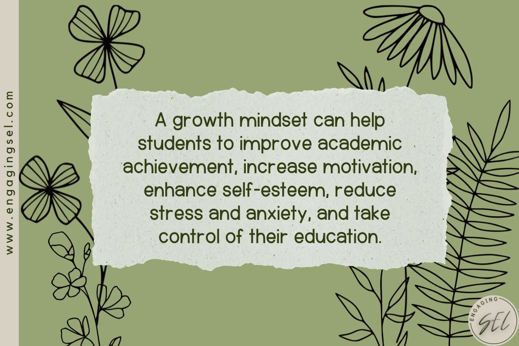 A growth mindset can help students to improve academic achievement, increase motivation, enhance self-esteem, reduce stress and anxiety, and take control of their education. When students hold the belief that their academic abilities can be developed, they develop resilience and the ability to persevere in challenges. (Dr. Annise Maybry Foundation)